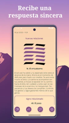 Con I Ching, cada pregunta encuentra su eco en el universo del oráculo. Podrás formular tus inquietudes más profundas y recibir interpretaciones personalizadas que iluminarán tu sendero, influenciadas por la esencia divina del I Ching. Este Libro de las mutaciones se convierte en tu confidente, ofreciéndote predicciones y consejos precisos para desvelar tu destino o simplemente obtener una dirección clara. Además, tendrás la posibilidad de guardar un registro de todas tus consultas, permitiéndote meditar sobre tu recorrido y observar tu crecimiento interior a lo largo del tiempo.