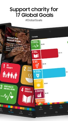 Sumérjase en un universo de información con contenido interactivo, fondos de pantalla cautivadores y artículos esclarecedores que abordan cada Objetivo. Participar en desafíos y campañas significativas le permite ser un agente activo en soluciones globales. Lo más notable es que Samsung Global Goals ofrece una forma distintiva de contribuir: cada interacción con fondos de pantalla y anuncios en la aplicación genera valor que Samsung destina a la causa que usted elija, realizando estas donaciones directamente al Programa de las Naciones Unidas para el Desarrollo (PNUD). Con cada uso, su apoyo se traduce en acción concreta y significativa.