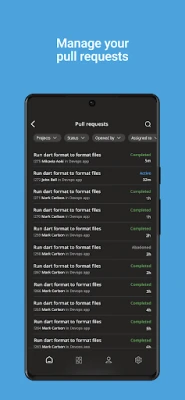 Controle cada aspecto de sus operaciones DevOps con un conjunto robusto de características. Acceda de manera segura utilizando su cuenta de Microsoft o un token de acceso personal. Gestione los elementos de trabajo con total flexibilidad: cree, edite o elimínelos, añada comentarios cruciales y adjunte documentos importantes para una colaboración fluida. Mantenga un pulso constante sobre sus tableros de equipo y sprints, asegurándose de que su proyecto avanza según lo planificado. Administre sus pipelines con la capacidad de cancelar ejecuciones en curso o reiniciar procesos, y revise los registros detallados para una depuración efectiva. Supervise proyectos completos, explore repositorios, examine commits con comparaciones de archivos (file diff) y gestione sus solicitudes de extracción (pull requests), aprobándolas, rechazándolas, completándolas o añadiendo comentarios directamente. Además, la aplicación permite cambiar entre múltiples organizaciones sin esfuerzo.