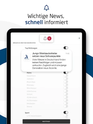 AZ News te brinda una experiencia noticiosa totalmente adaptable. Desde el primer momento, configura tu región preferida para que el contenido se ajuste de forma inteligente a tus intereses locales. ¿Eres fanático de varios equipos o temas? Nuestra función de selección múltiple te permite seguir simultáneamente las noticias de diferentes clubes deportivos o categorías. Ajusta el tamaño de la fuente para una lectura cómoda, guarda artículos interesantes en tu lista personal para revisarlos cuando tengas un momento de tranquilidad y gestiona tus alertas. A través del buzón de notificaciones, todas las actualizaciones importantes se consolidan en un solo lugar, garantizando que nunca te pierdas los titulares que has elegido como prioritarios.